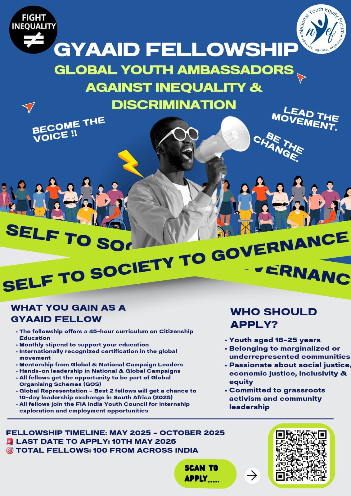 FIA India in association with NYEF, is excited to announce the launch of the GYAAID Fellowship 2025 тАФ an unique opportunity for young people (18тАУ25 years) from Dalit, Adivasi, Muslim,…